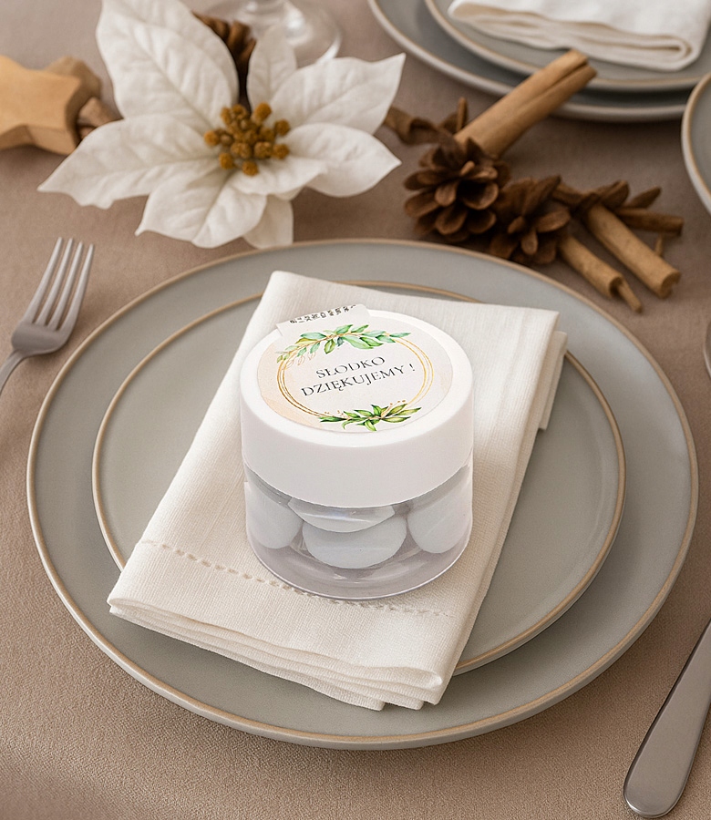 • Każdy słoiczek posiada elegancką naklejkę „Słodko dziękujemy!” (projekt etykiety nie podlega zmianie)